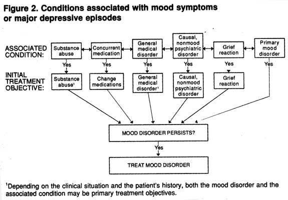 1Depending on the clinical situation and the patient’s history, both the mood disorder and the associated condition may be primary treatment objectives.